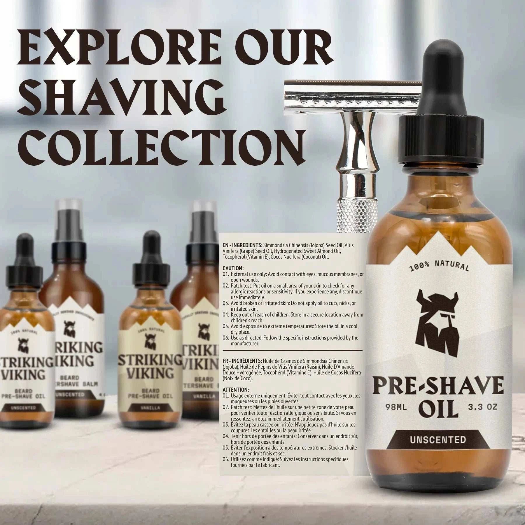 Experience a new standard in shaving with Striking Viking Pre-Shave Oil. Designed for those who seek both efficiency and elegance in their grooming routine, this unscented oil delivers a seamless shave with minimal friction. Its advanced formula not only protects your skin but also leaves it feeling hydrated and rejuvenated. Ideal for the discerning gentleman, this pre-shave oil is a sophisticated, yet understated addition to your daily regimen.