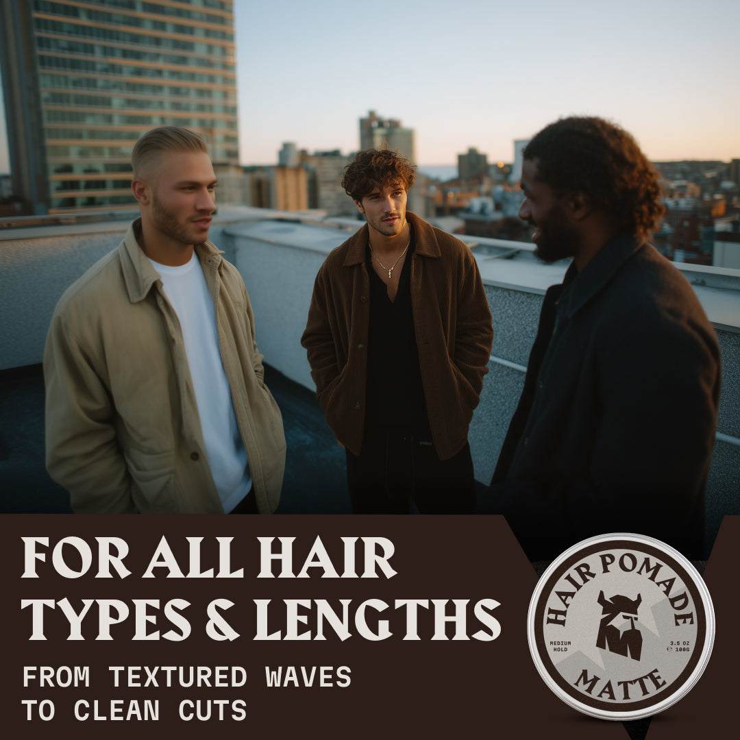 Effortless Style, Every Day. Striking Viking Matte Hair Pomade delivers a natural, matte finish with medium or strong hold, perfect for crafting modern, casual, or classic hairstyles without any unwanted shine. Achieve the look you want while keeping your hair soft, manageable, and healthy.