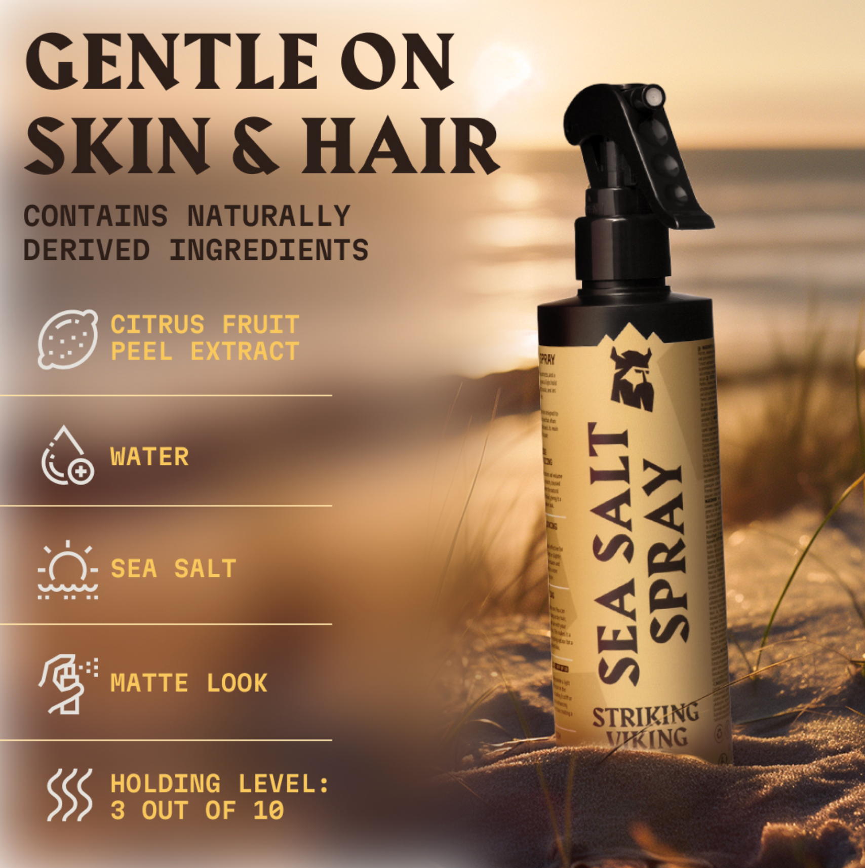 Introducing Striking Viking Sea Salt Spray for Men – Your Shortcut to Effortless Beachy Waves! Tired of spending hours at the beach to achieve that perfect tousled look? Look no further! Striking Viking Hair Spray Men and Sea Salt Spray Spray for Hair Women is here to deliver those coveted beachy waves right to your doorstep. Whether you're a man seeking a laid-back, textured style or a woman looking for that irresistible, windswept allure, our Sea Salt Hair Spray has got you covered.
